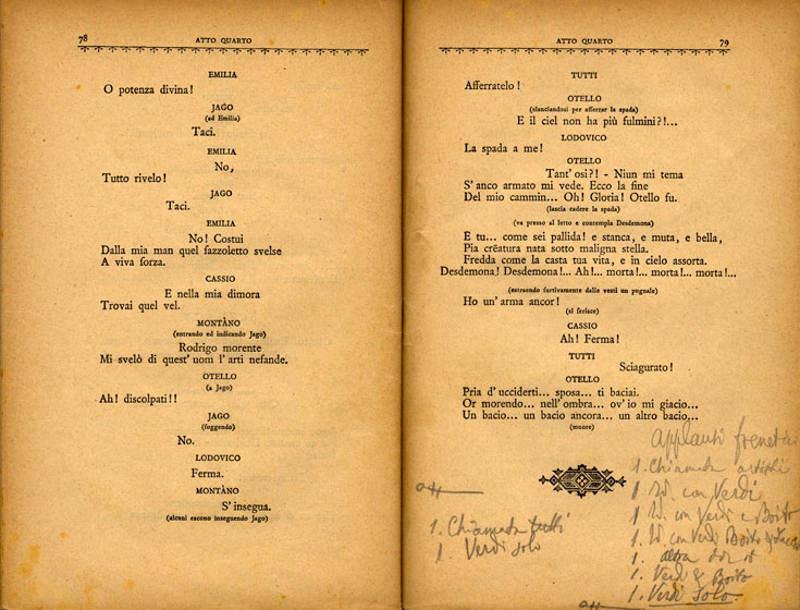 Todavía no existía la figura del director de escena o regista, pero Verdi escribió para todas sus óperas desde Un ballo in maschera unasdisposizione scenica para preservar sus intenciones en lugares que se presentaran sus óperas sin su presencia. Ricordi publicó estas disposizione. Esto me hace pensar en lo ridículo de las afirmaciones de los directores de escena que dicen que es imposible conocer las intenciones musicales y escénicas de Verdi.